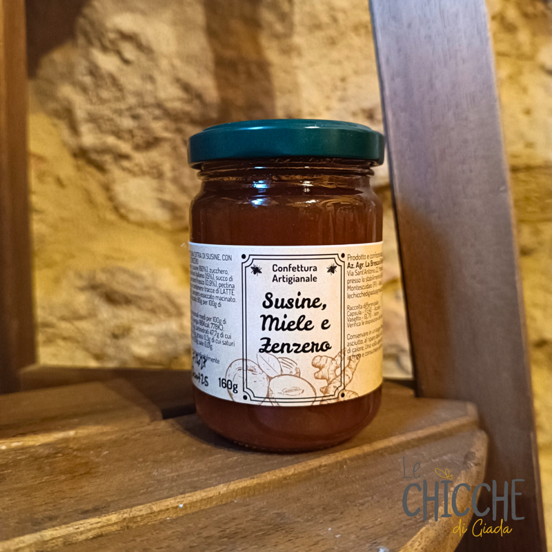 Ingredienti: susine, zucchero, miele millefiori italiano, succo di limone, zenzero fresco, pectina E440ii (può contenere tracce di LATTE e derivati), zenzero essiccato macinato.